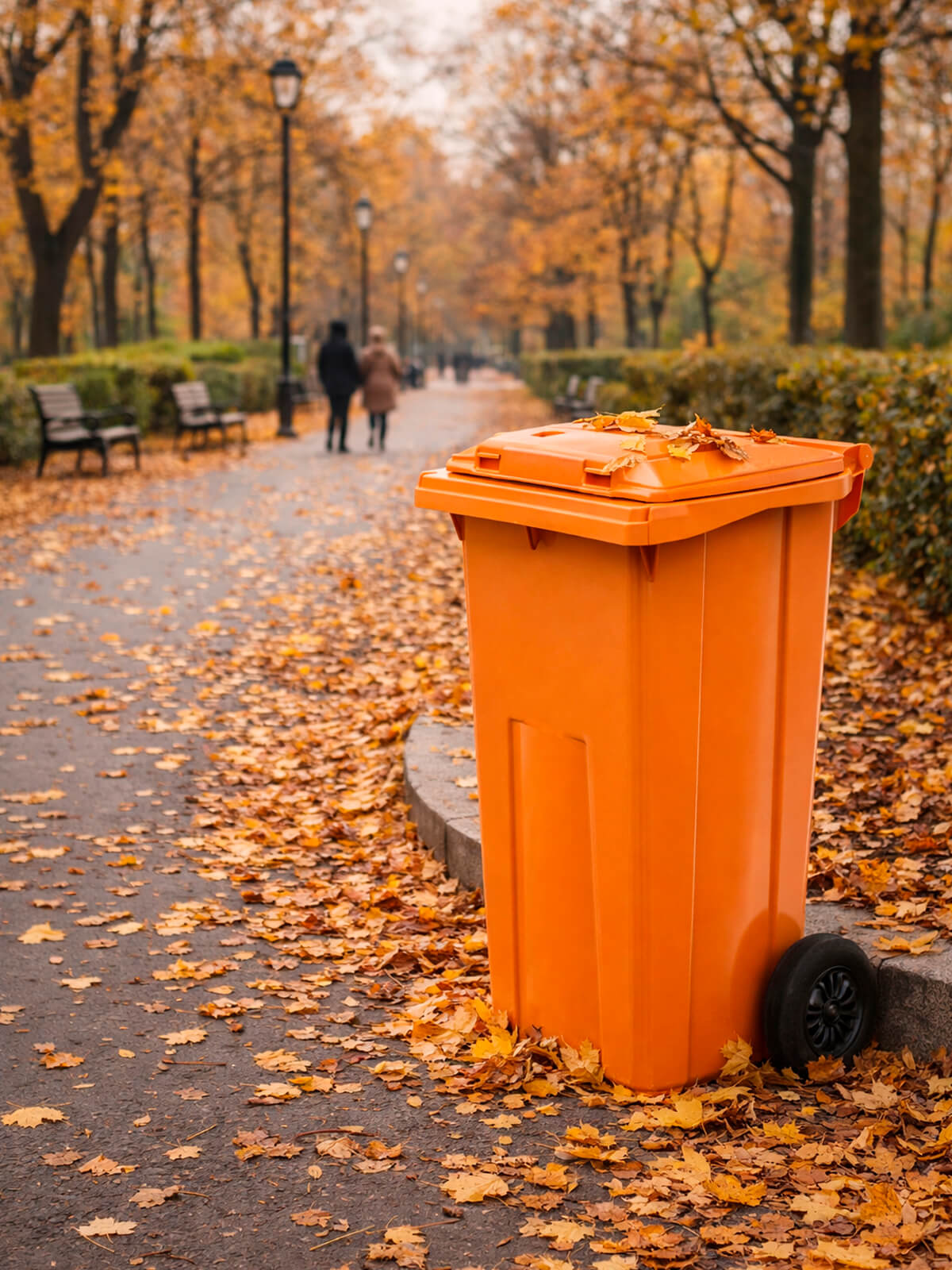 Контейнер для мусора 120 л на колёсах с крышкой, оранжевый — повышенная видимость и системный контроль отходов