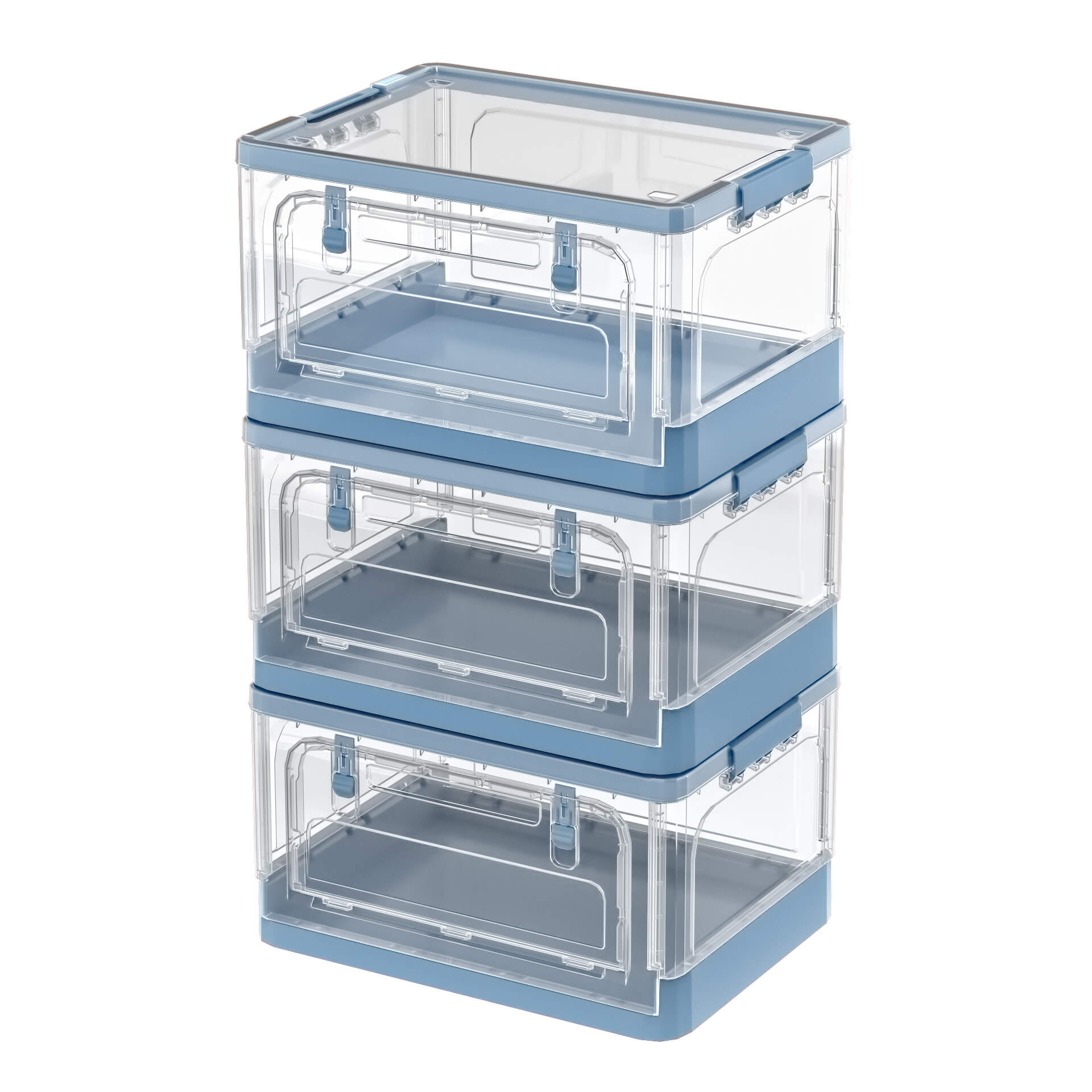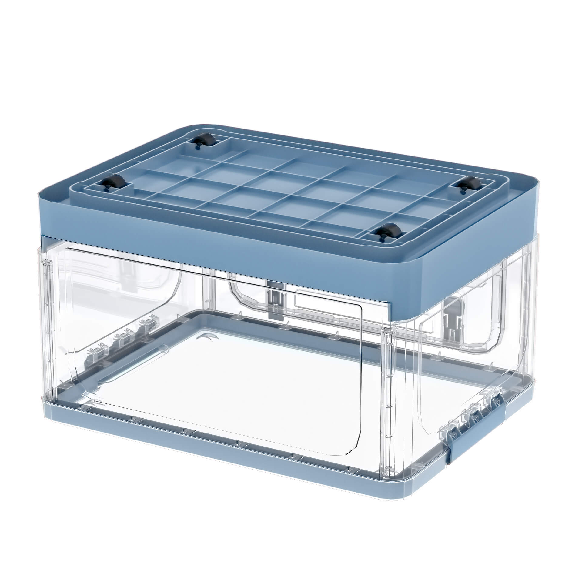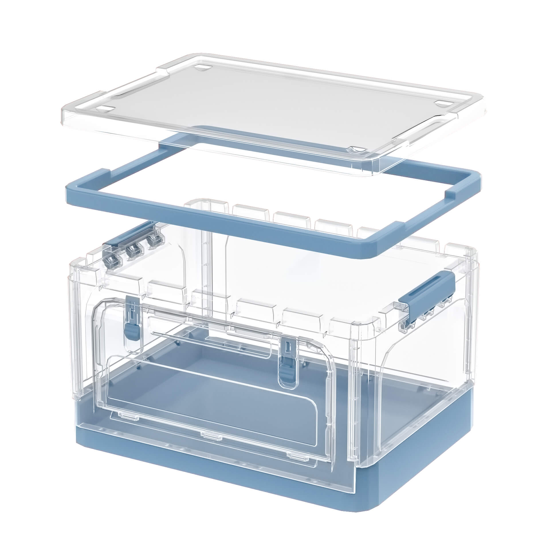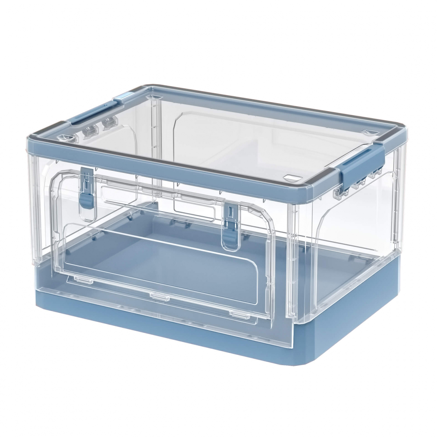 Складной пластиковый ящик 490х360х280 мм, прозрачные стенки, синее дно – удобное и стильное решение для хранения