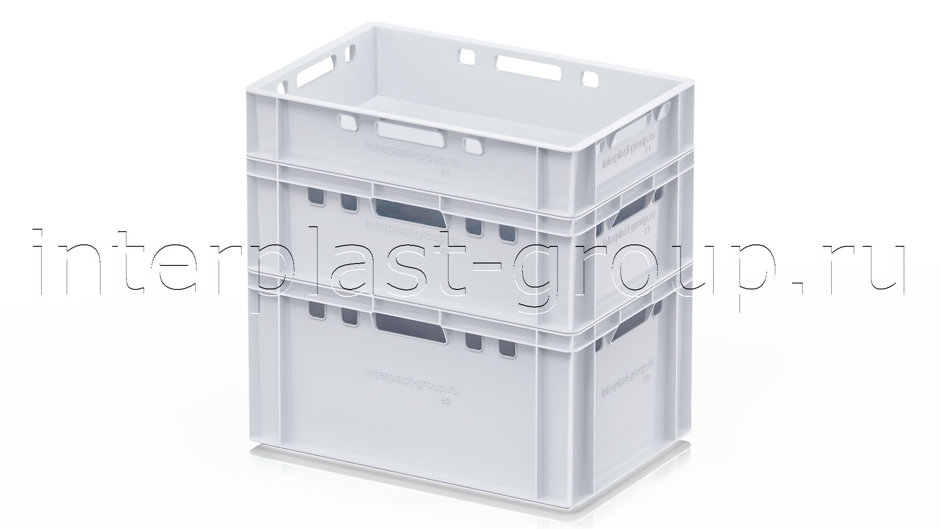 Изделие применяется как контейнер универсальный и востребовано в роли пищевого контейнера и контейнера для продуктов, включая ящик для мяса серии Е и ящик для колбасных изделий. Формат евростандарта позволяет классифицировать модель как евроконтейнер, полностью совместимый с другими ящиками серии и типовым складским оборудованием.