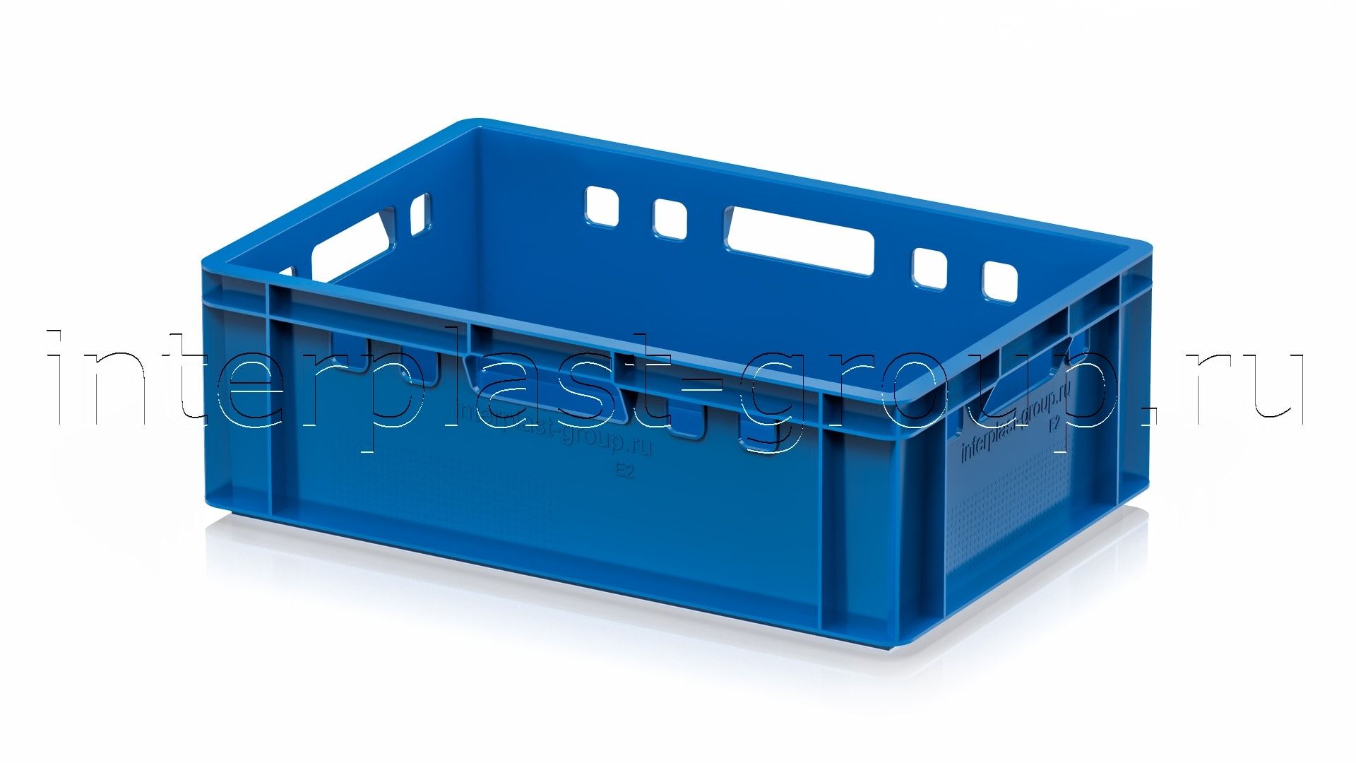 Ящик используется как контейнер универсальный и эффективный пищевой контейнер для различных категорий продукции. Он подходит как контейнер для продуктов, включая ящик для мяса серии Е и ящик для колбасных изделий. Стандартные габариты позволяют использовать изделие как евроконтейнер в единой системе с другими ящиками серии.